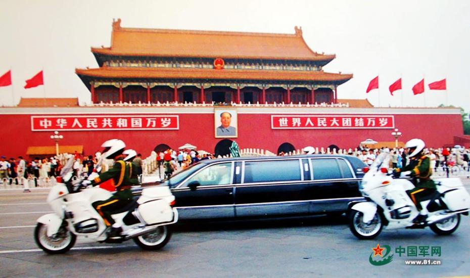 国宾护卫队员护卫着国宾驶过天安门。特约记者 李光印 摄影报道 图片来源:中国军网