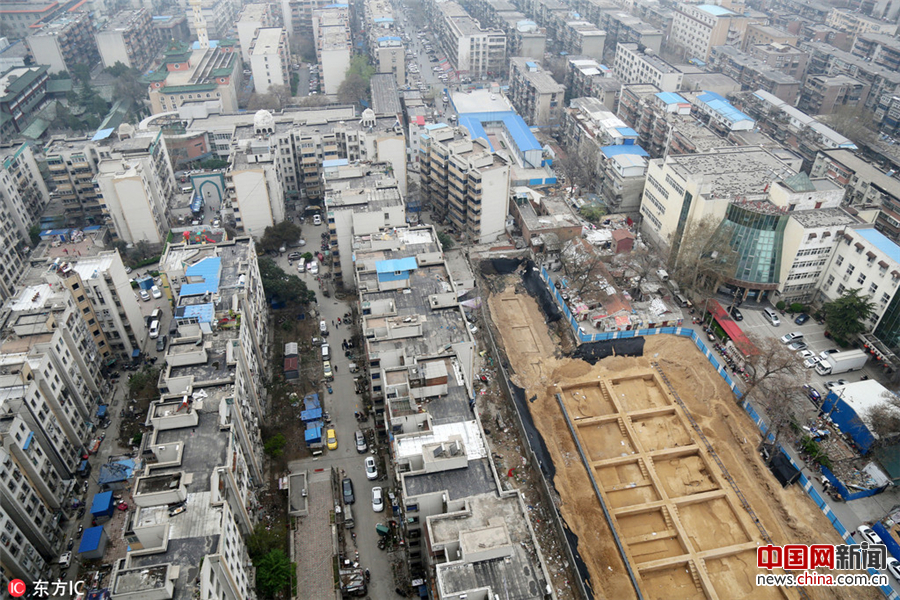 2017年3月21日,在河南省郑州市紫荆山路附近,有一片大型考古工地,周围用铁皮围挡拦住,现场已经封锁多日。从对面一处近二十层的写字楼高处俯瞰,可以看到这片工地已经被挖开,是大片的考古工地,里面放着一些考古人员用的工具。东方IC
