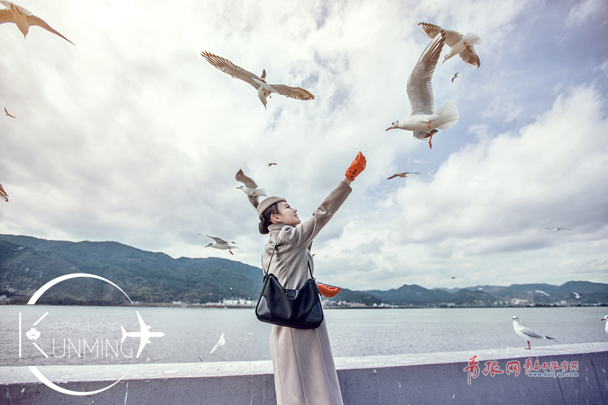 雪白的身体,黑溜溜的眼睛,红红的嘴巴,大大的翅膀,粉红色的小爪子,组成红嘴鸥精灵般的模样。昆明人喜欢它们是有原因的。这些小小的精灵,飞舞着翅膀,啄食游人手中的面包,没有害怕,更多的是有爱的互动。在这座处处散落着慵懒的城市,红嘴鸥给昆明带来了一份慵懒之外的活力。