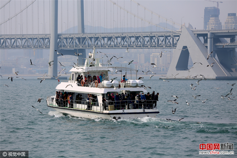 2017年3月22日,辽宁省大连市,辽宁沈阳举行海葬公祭活动,193位家属来到大连海域,面对大海诉说对已逝亲人的思念之情。陈鸿博/视觉中国