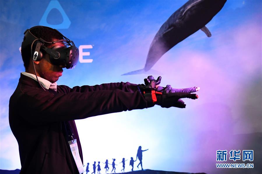 科技展会上 来宾体验虚拟现实