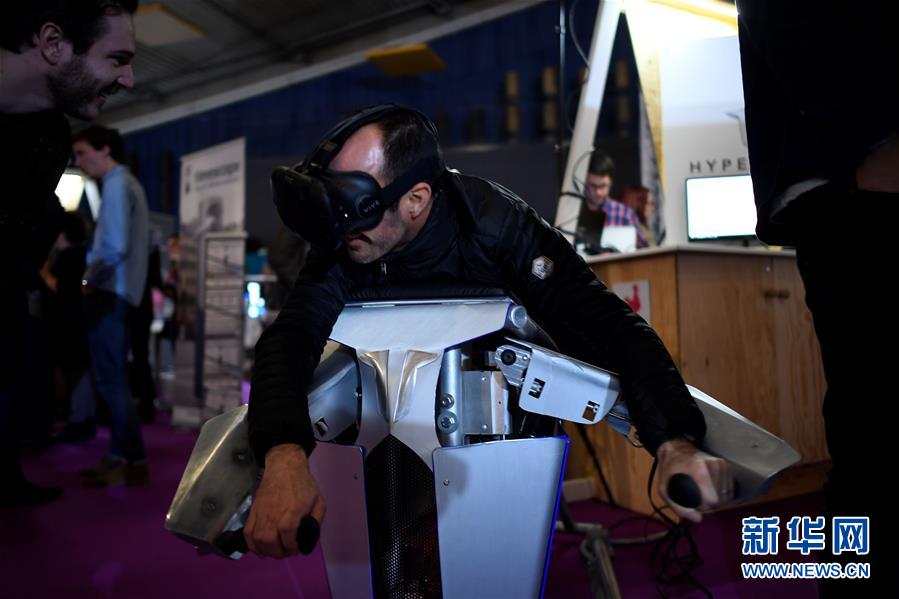 3月22日,在法国拉瓦尔举办的“拉瓦尔虚拟”科技展会上,一名来宾用虚拟现实飞行器模拟飞翔。该科技展会集中展示最新的虚拟现实、增强现实和3D科技。新华社/法新