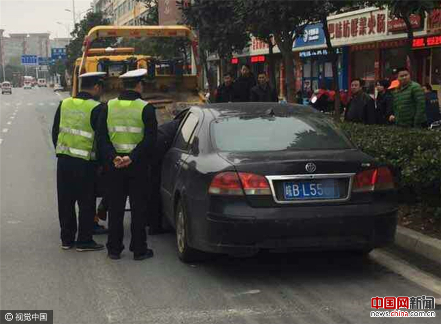安徽“奇葩”违章轿车用麻绳悬挂号牌