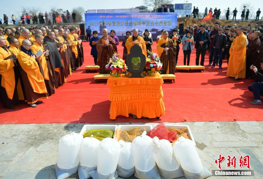 河北举行放生仪式 放生29万只鱼鳖