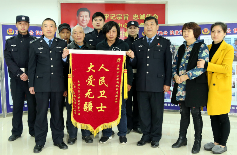 中国网湖北3月27日讯(记者 王振华 通讯员 陈娅君 杨川 摄影 何文春)“非常感谢民警,感谢你们对我们的关心”3月24日上午9时许,在湖北宜都市公安局姚家店派出所的接待大厅内,汪学富的妹妹汪学菊含着泪水送上一面“人民卫士 大爱无疆”的锦旗。失散17年的一家人泣不成声的相拥在一起,在场的每一位都无不被之感动。临行前,汪学富对民警这一天来的照顾表示了深深的感谢,并表示自己回家后会好好孝顺父母,弥补这些年的亏欠。