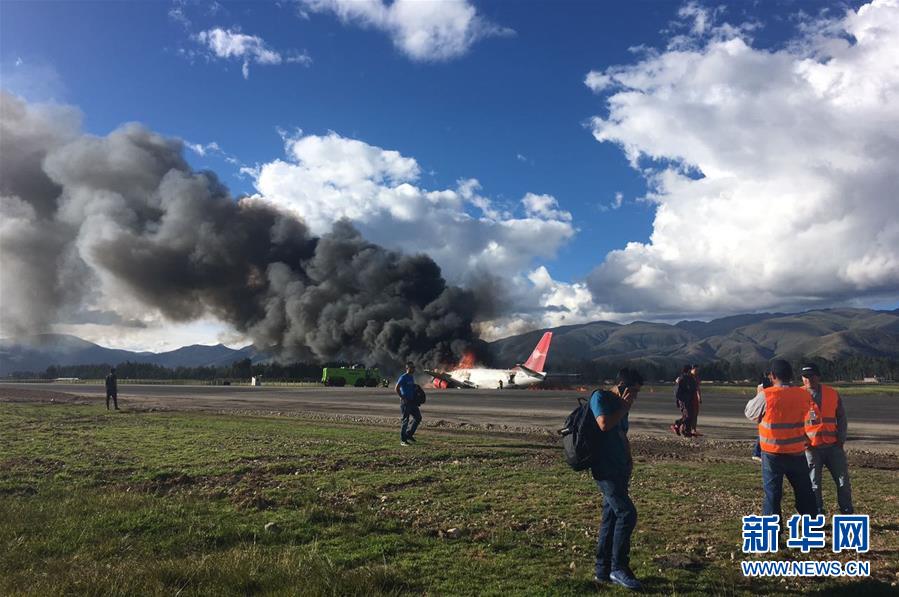 据秘鲁媒体报道,一架秘鲁航空公司客机当地时间3月28日晚在着陆时起火,目前伤亡情况不明。新华社发(卡洛斯·费尔南德斯摄)