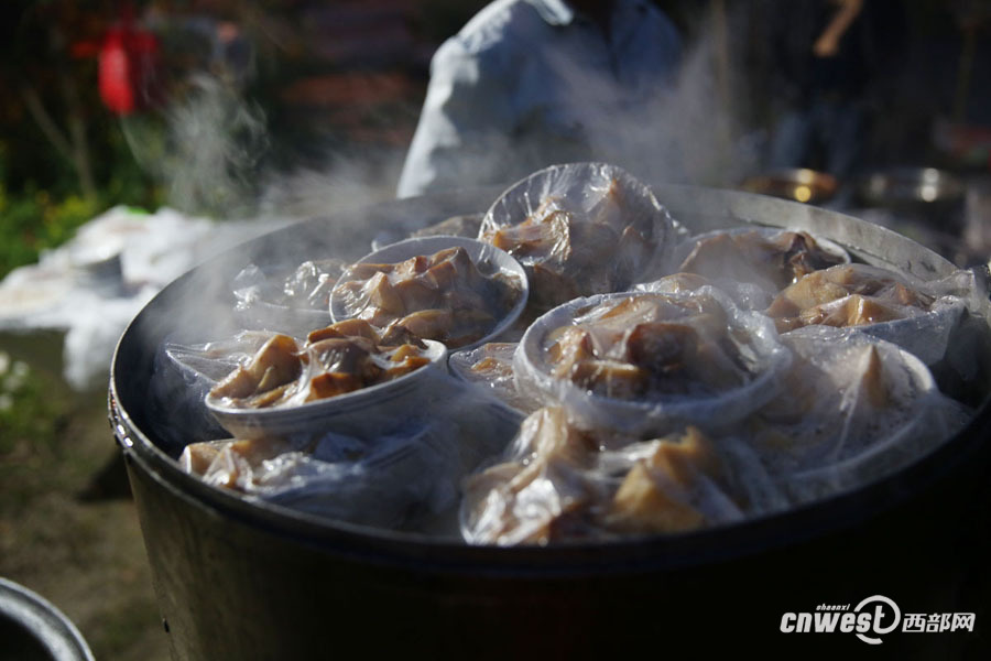 清明小长假陕南洋县农家院子里4口大铁锅做当地土席游客吃了都说好