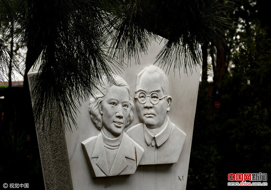 2017年4月4日,北京市八宝山革命公墓内,墓造型独特,为不规则立体状,上面刻有孙志远和其夫人赵磊的雕像,为孙志远和其夫人的合葬墓的雕塑墓碑。供图:视觉中国