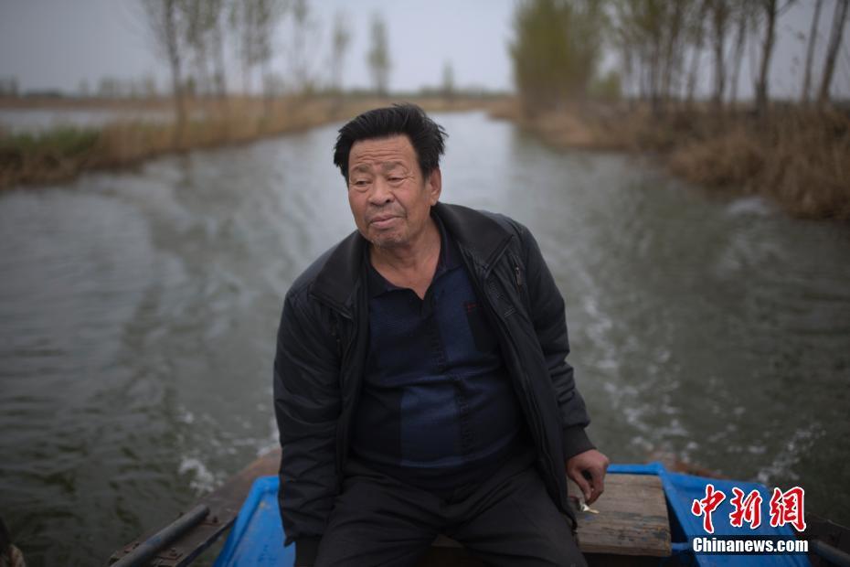 4月4日,白洋淀岸边的河北省安新县留通村村民杜锁良划着自己的小船穿行在白洋淀里。60岁的杜锁良从6岁起就跟着家人开始了船上生活。清明几天,他已经连续接待了几波北京天津来的客人。