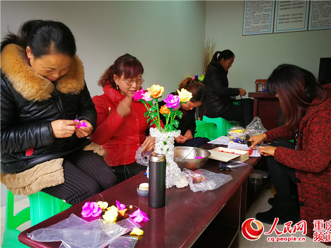 万州区沙河街道安乐村组织留守妇女开展手工编织培训,鼓励他们在家门口就业。 陈琦/摄