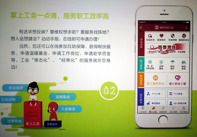 重庆市总工会推出“渝工娘家人”APP,只需动动手指,就可享受各种“常态化”“经常化”服务。 陈琦/摄