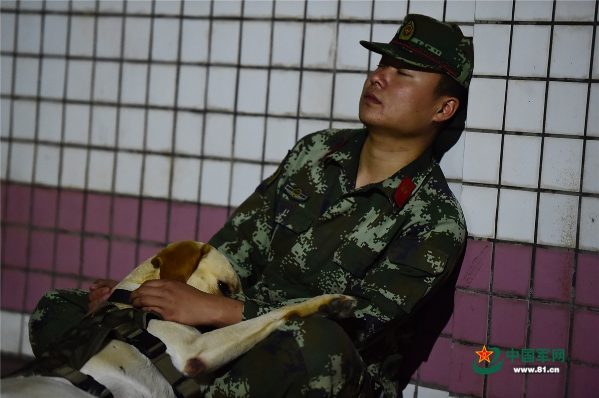 训练间隙,兵犬在休息。