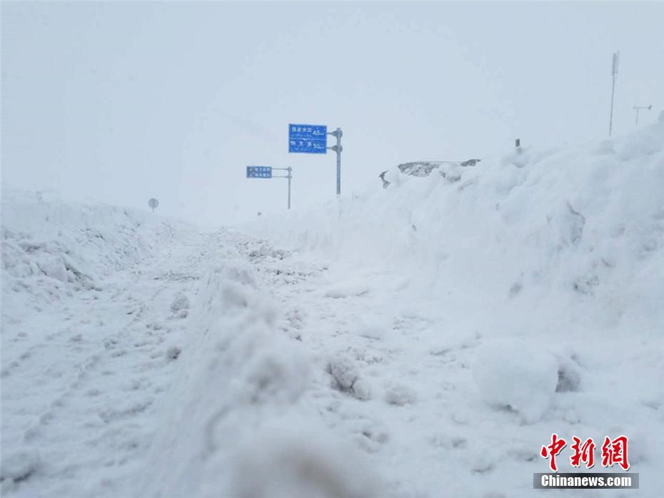 截至4月10日11时发稿时,该路段的降雪依然没有停止。据了解,阿克塞哈萨克族自治县已启动恶劣天气应急预案。高宏善 摄