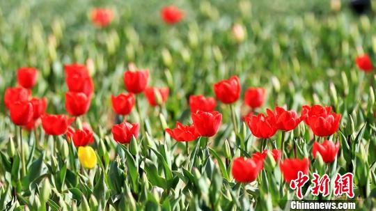 甘肃黄土高原小城泊来进口郁金香俏丽争春