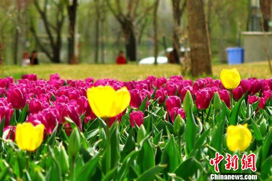 甘肃黄土高原小城泊来进口郁金香俏丽争春