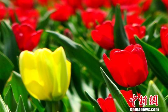 红色、黄色的郁金香满园盛开。侯奇志 摄