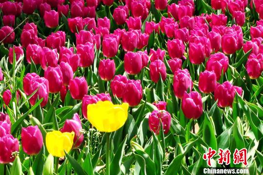 甘肃黄土高原小城泊来进口郁金香俏丽争春
