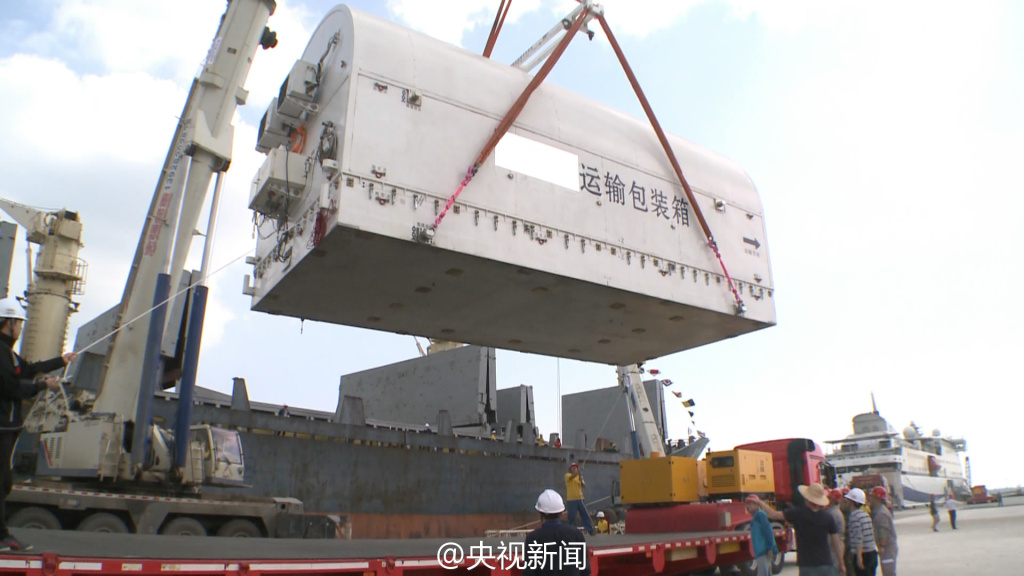 2月13日,天舟一号货运飞船安全运抵海南文昌航天发射场。下一步将开展发射场区总装和测试工作,计划于4月中下旬由长征七号遥二运载火箭发射升空。天舟一号具有与天宫二号空间实验室交会对接、实施推进剂在轨补加、开展空间科学实验等功能。央视记者张磊(图片来源:央视新闻微博)