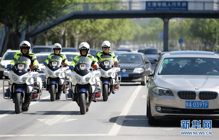 4月17日,西安交警铁骑队队员在西安市太白南路巡查。当日,西安市公安局交警支队正式组建西安交警铁骑队,未来将在西安市实现由110名交警组成的摩托车执法队伍。西安交警铁骑队配备有大功率警用摩托车和警务通、蓝牙打印机、酒精测试仪、数字电台等信息化单警装备,将对重点路段开展机动巡查和定点值守。新华社记者李一博 摄