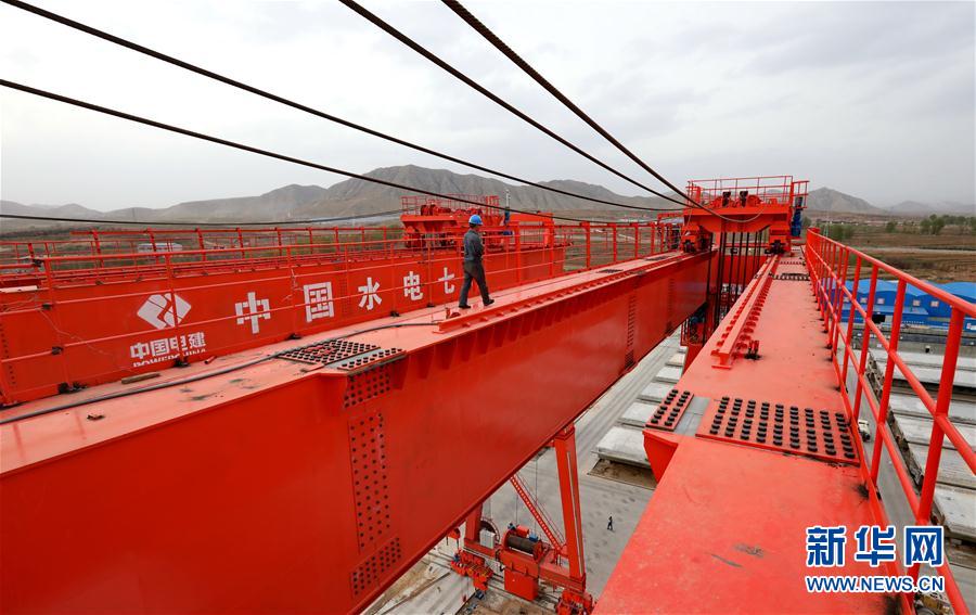 4月17日,工人在京张高速铁路工程宣化区境内跨112国道特大桥工地施工。新华社记者 杨世尧 摄