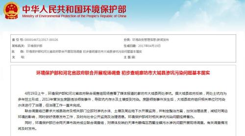 对此,环保部和河北省政府组成的联合调查组表示,初步查明“大城县渗坑污染问题基本属实”。