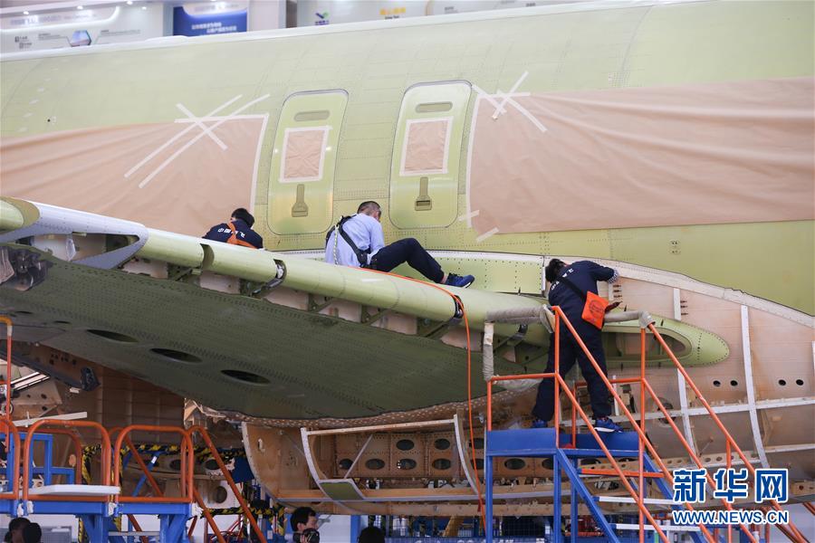 4月20日,C919大型客机102架机在中国商飞公司上海飞机制造有限公司总装车间内进行系统装配。 4月18日,经过严格评审,C919大型客机首架机通过首飞放飞评审,待完成全部高速滑行测试后,可择机开展首飞。这标志着C919大型客机首架机的首飞又迈出了重要一步。根据计划,C919飞机将有六架飞机陆续投入试验试飞任务。 4月20日,记者来到中国商飞公司上海飞机制造有限公司总装车间,走近C919大型客机102架机。据悉,C919大型客机102架机飞控、液压、燃油等系统安装正按计划进行,为实现全机通电做好准备。新华社记者丁汀 摄