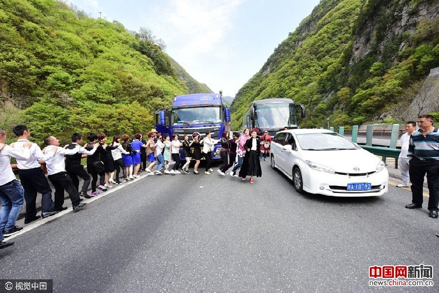 2017年4月22日10时多,西汉高速户菜出口东边,遭遇小范围的堵车,近百辆大小不一车辆滞留等待长约半个多小时,乘客们为驱散堵车心慌、心烦,跳起舞蹈解闷。