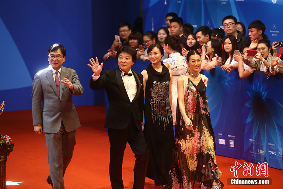 4月23日,第七届北京国际电影节在北京怀柔区国家中影数字制作基地闭幕。官方四大女神林志玲、莫妮卡贝鲁奇、铃木保奈美、蒋雯丽红毯斗艳。图为铃木保奈美黑纱透视装亮相。中新网记者 金硕 摄