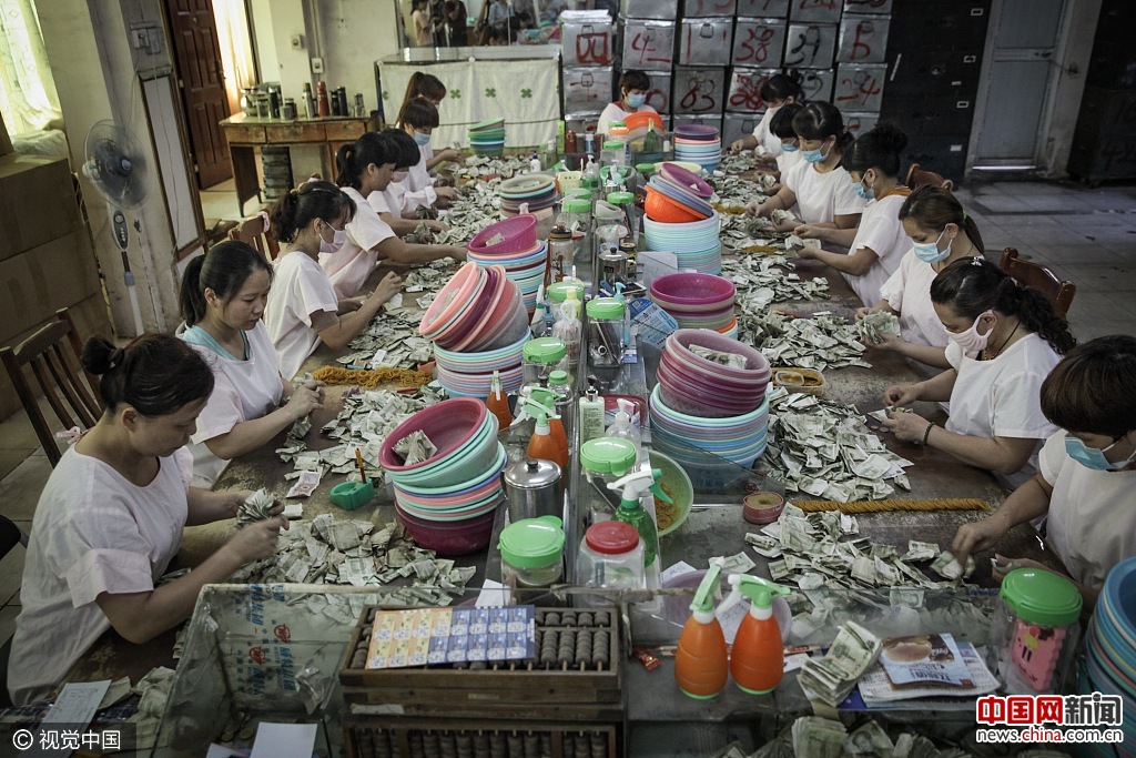 “一共有29名点钞员,大家每天要合力完成清点18万元一元纸币的任务量,还是清一色的‘娘子军’,相对来说,女孩子比较心细,更适合这份需要耐得住性子的特殊工作。”点钞中心负责人洪清说着,带着记者走进一栋二层小楼。张茂/视觉中国