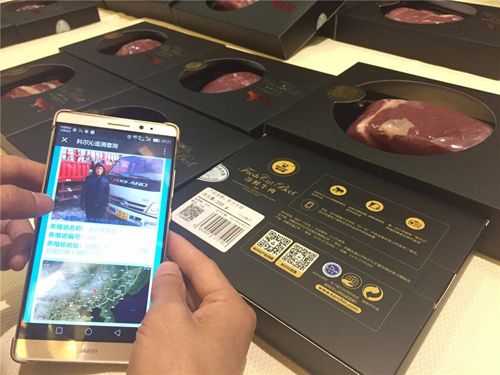 科尔沁牛业推出的“钻石牛肉“,用“千里眼”追溯系统可查询每块牛肉的生产情况。中国经济网记者 李景摄