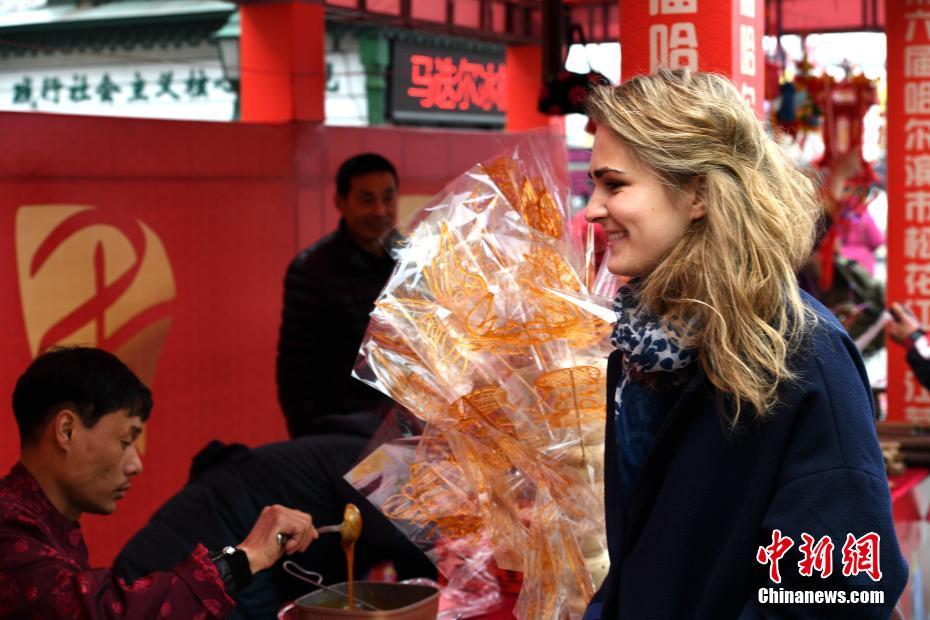 来自法国的27岁女孩安娜从高中开始学习汉语;后来,她来到中国读研学习中医学相关专业,两年多的深造让安娜越发迷恋博大精深的中医和中国传统文化。安娜说:“中医在欧洲已获得广泛的认可,在我的家乡法国里昂现在也开了很多中医馆,我希望把在中国学到的医技带回家,再尝试跟中国的中医机构进行合作,将来也开一家自己的中医馆。”图为安娜课余去哈尔滨中央大街参加民俗活动,被民俗纪念品吸引。 中新社记者 王舒 摄