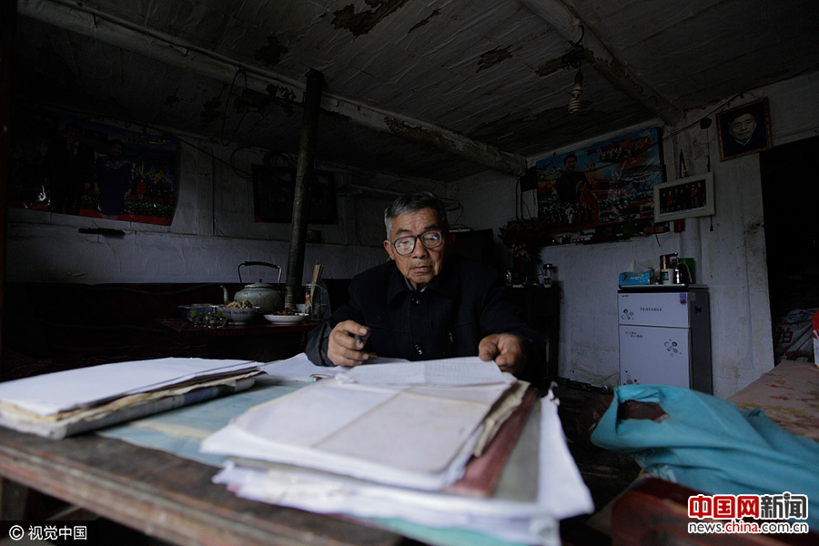 2017年4月24日,贵州遵义,老支书与往常一样,巡完渠后回到家中继续工作。潘凌峰 吴启林/视觉中国