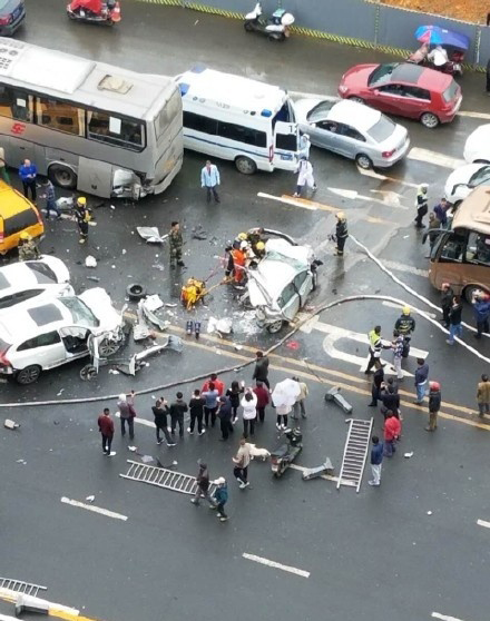 成都一立交附近发生车祸 多车相撞现场惨烈