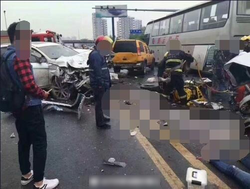 成都一立交附近发生车祸 多车相撞现场惨烈