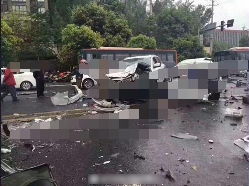 成都一立交附近发生车祸 多车相撞现场惨烈