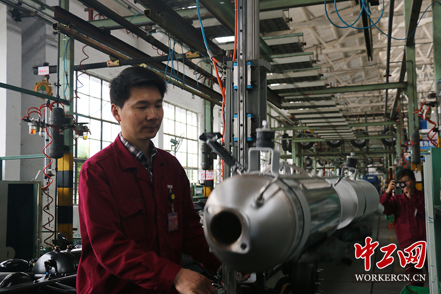 创新的后排气系统搬运辅具,同样减轻了工友的负重。 中工网记者 葛文琦 摄