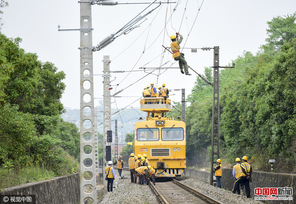 中国网4月27日讯 2017年4月26日,陕西安康火车站的数列客货列车停运或晚点,然而没有多少人知道,此时此刻有多少铁路建设工人正在挥汗如雨争分夺秒。李晖/视觉中国