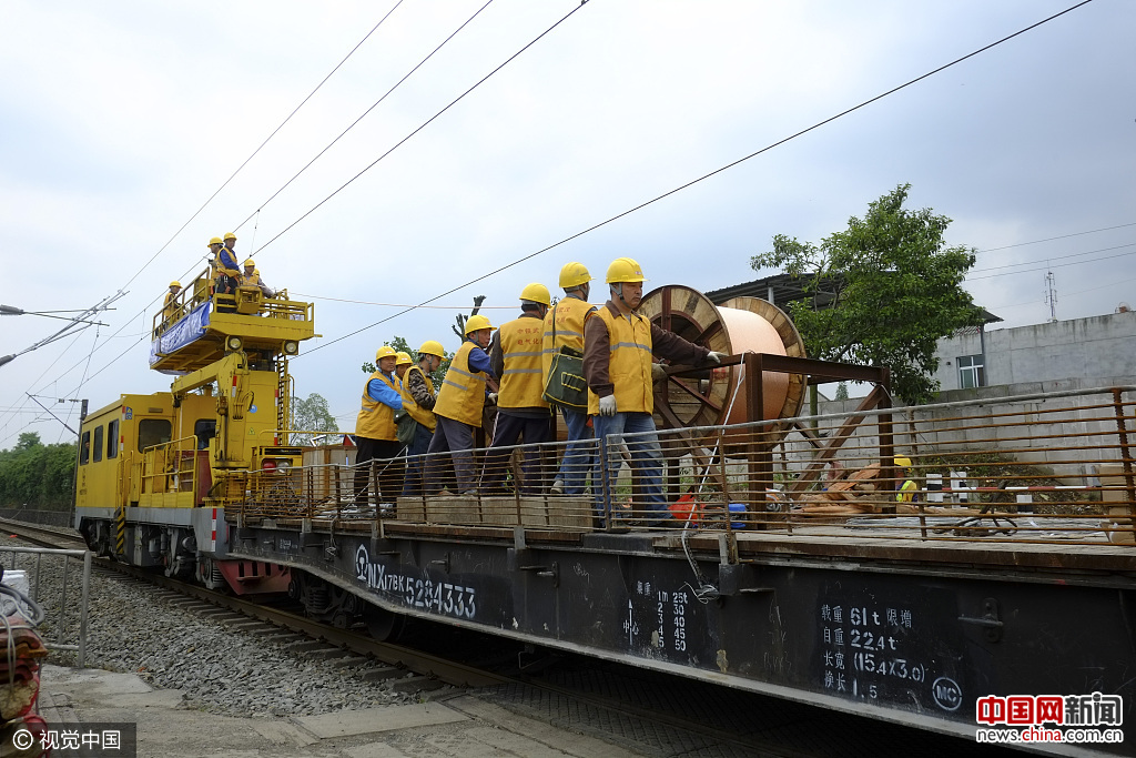 由所在地位于西安的中铁武汉电气化局西安分公司承担的阳安(阳平关到安康)铁路二线电气化改造项目,正在争分夺秒的进行。当日,该项目也迎来今年集中大修的最后一次“天窗”。因此所有施工作业必须在既定时间内完成。李晖/视觉中国