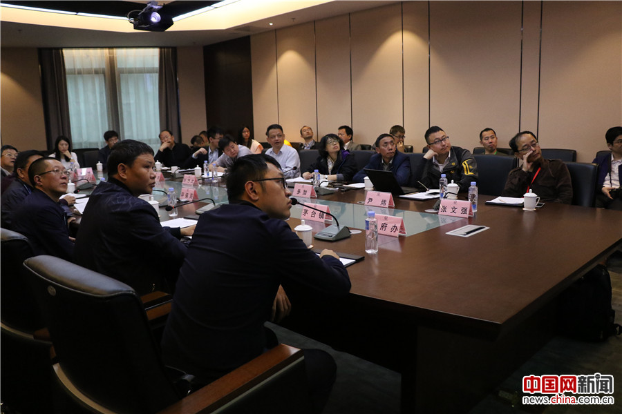 2017年4月26日,由专家、媒体组成的调研组与贵州省环保局及各市、县相关单位进行了调研座谈会。图为座谈会现场调研组成员观看赤水河环境保护短片。中国网记者吴佳潼摄