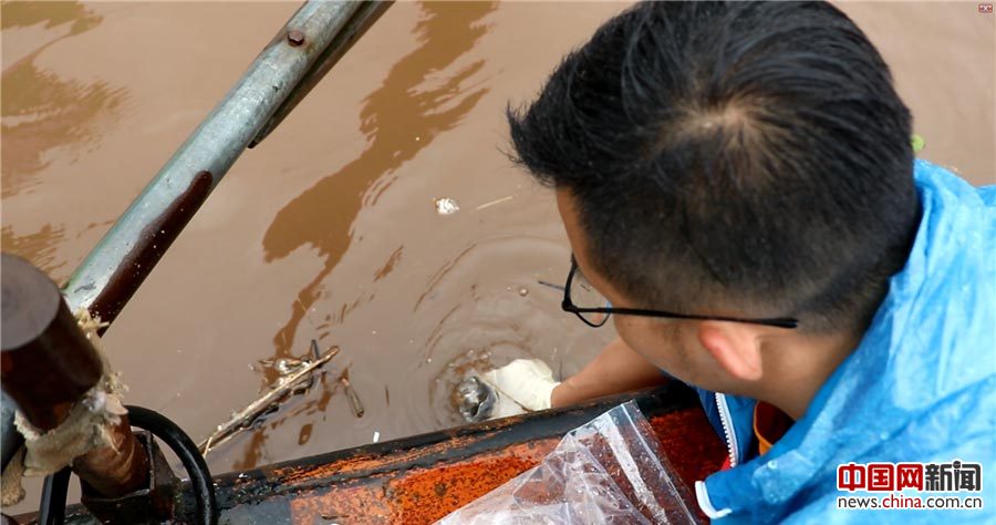 2017年4月24日,第二届“寻好中国好水”大型环保行动贵州赤水河畔启动。图为中国科学院生态环境研究中心专家对赤水河出境断面遵义市习水县土城镇九龙屯断面监测点进行水质采样。中国网记者吴佳潼摄