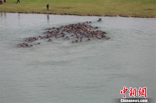 嘉陵江放牛节开幕 万人围观“百牛渡江”壮观景象