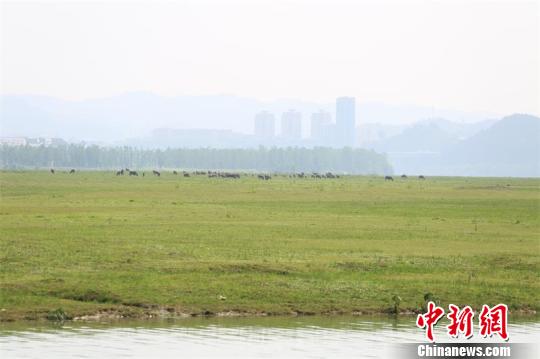 上百头的牛群在草坪的岛屿上觅食。 王爵 摄