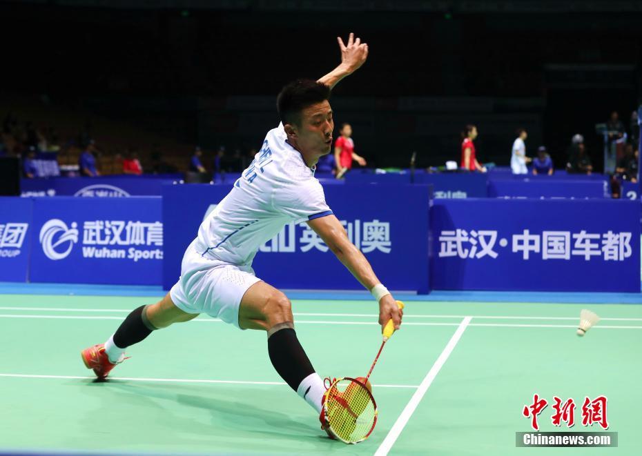 4月28日,谌龙在比赛中回球。当日,2017年亚洲羽毛球锦标赛进入四强争夺战。中国选手谌龙以2:0战胜中国香港选手伍家朗晋级4强。中新社记者 张畅 摄
