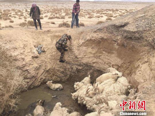 甘肃肃北羊群被困深坑 边防官兵肩扛解救