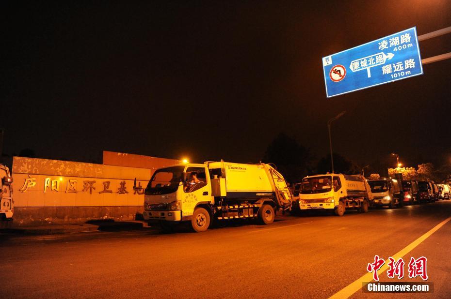 4月29日凌晨,环卫工人将小区、道路旁的垃圾通过小型垃圾清运车就近收运至中转站。凌晨1点是永青垃圾中转站的开站时间,10名站内工人近30分之前倒入的垃圾经过压缩,集中于车中密封式垃圾箱中,车辆经过1个小时30公里路程之后,垃圾来到下一站——合肥市垃圾焚烧发电厂。在这里,垃圾经过300℃到900℃高温的“消化”后,再进行后期活性炭等流程处理,变成无污染的气体排放掉,剩下20%的炉渣,可用来做城市道路的行道砖等建材。中新社记者 张娅子 摄