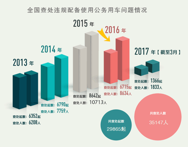 据统计,违规配备使用公务用车问题查处数占总查处问题数18.4%,查处人数占总查处人数15.9%。