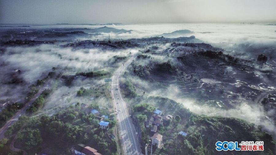 2017年5月4日早晨,广安城区现平流雾景观,很多建筑都陷入雾海之中,美如仙境,令人叹为观止。