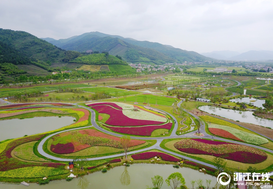 浙江在线5月8日讯(浙江在线记者董旭明摄)鸟瞰杭州余杭区径山镇潘板桥村的“千花里”景区,缤纷绽放的千亩花海宛如巨幅地毯。远山近水,民居掩映,勾勒出一幅宜居秀美的田园风光图。余杭区重点打造的“大径山乡村国家公园”自2016年2月正式启动以来,经过一年多的综合整治与建设,大径山景观环境已大幅提升,项目一期工程顺利收官。