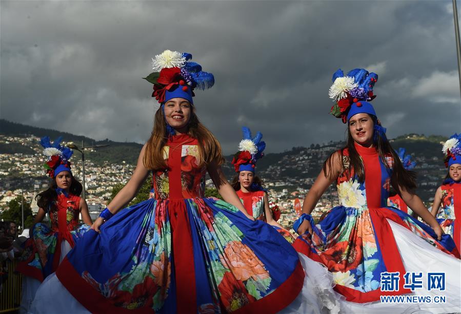 5月7日,在葡萄牙马德拉自治区首府丰沙尔,人们参加鲜花节花车巡游。新华社记者张立云 摄