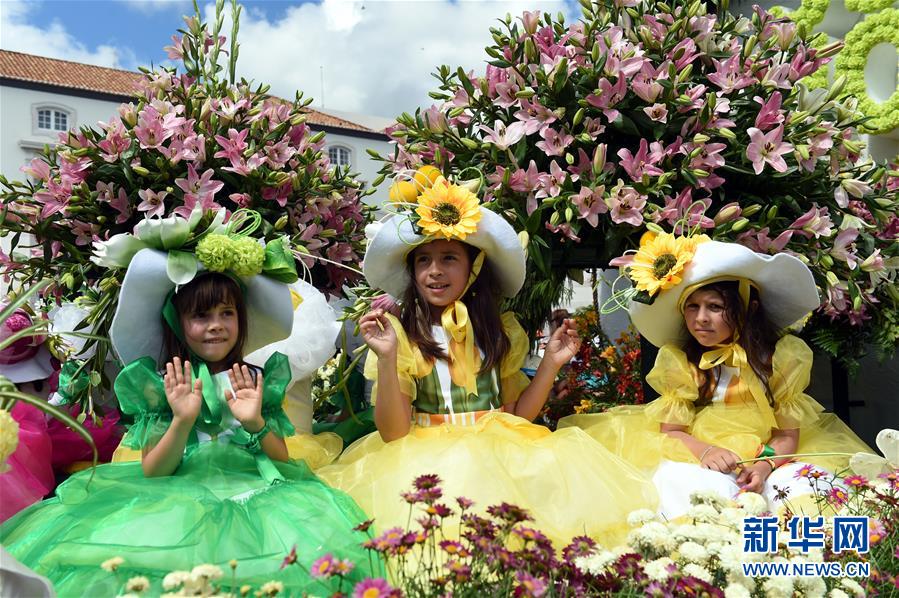 5月7日,在葡萄牙马德拉自治区首府丰沙尔,人们参加鲜花节花车巡游。新华社记者张立云 摄
